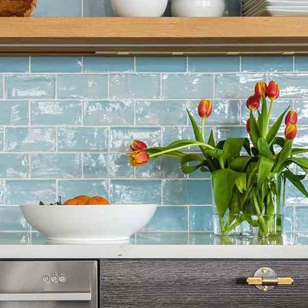 - Pros: Ceramic tile offers a true high-gloss finish, which makes it an excellent choice for creating a bold accent wall. It is much easier to cut than porcelain, even in thicker 1/2″ formats, which makes it suitable for many DIY installations. The material is lighter in weight and easier to handle. High-gloss finish is very common.