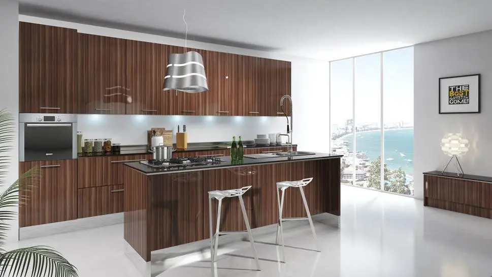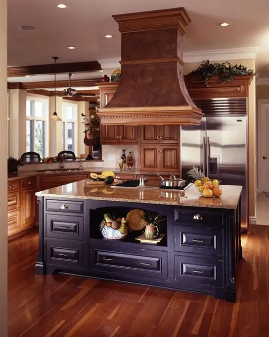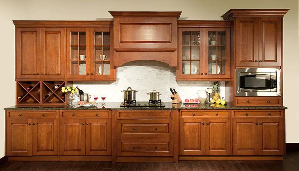 - Cons: Wood is a natural product and each piece takes the stain differently that’s why you shouldn’t expect your kitchen to look exactly like your sample – it will be very close, but can be a little bit darker or lighter. Sometimes wood look cabinetry can be too dark or doesn’t fit the style of the house.