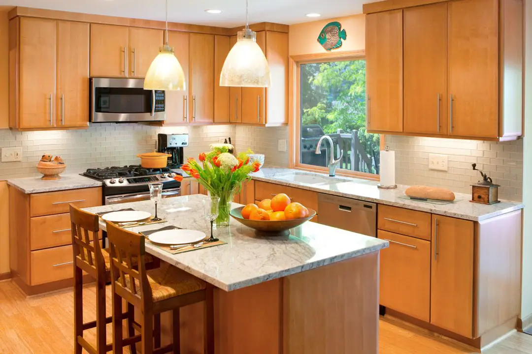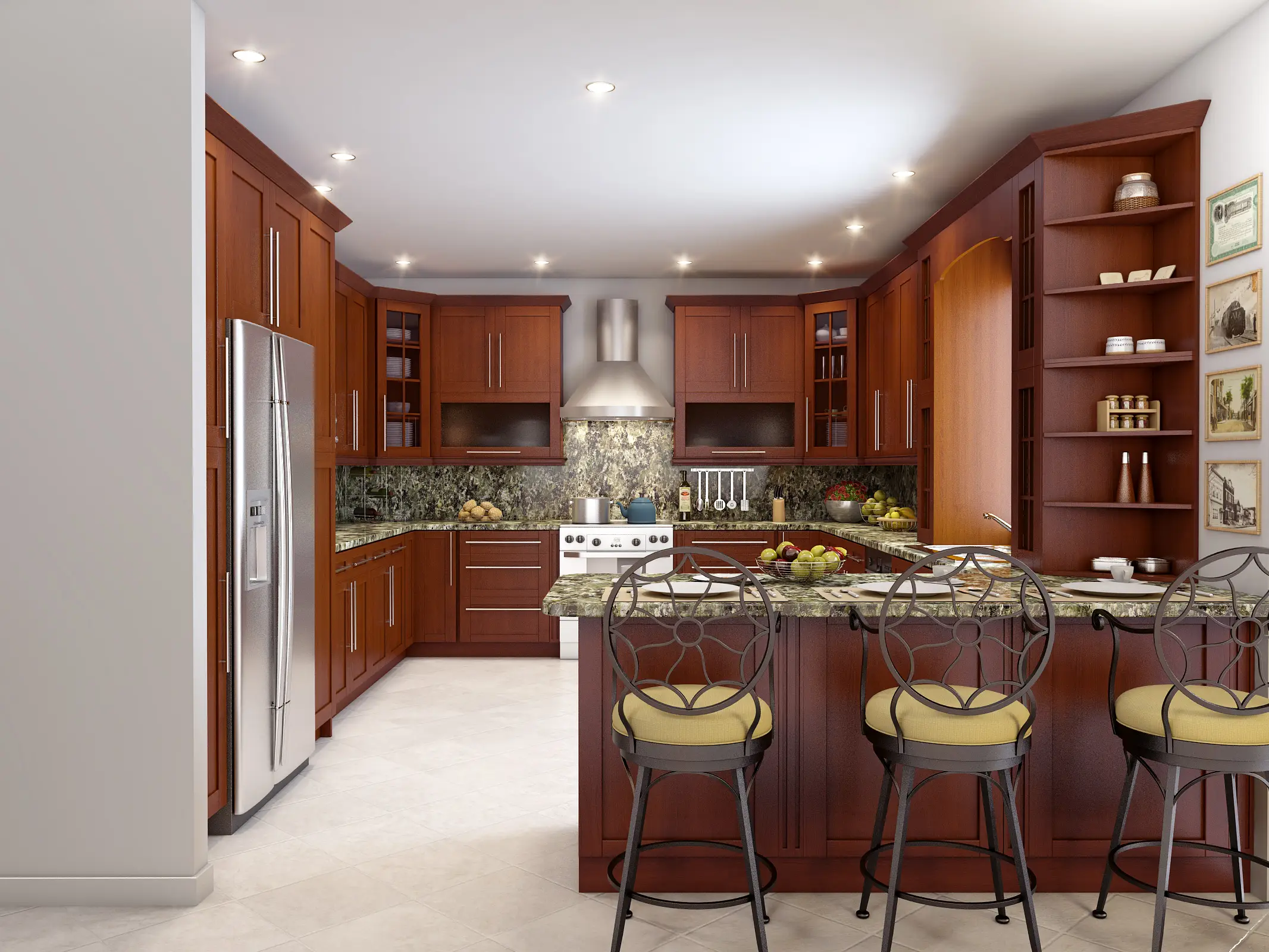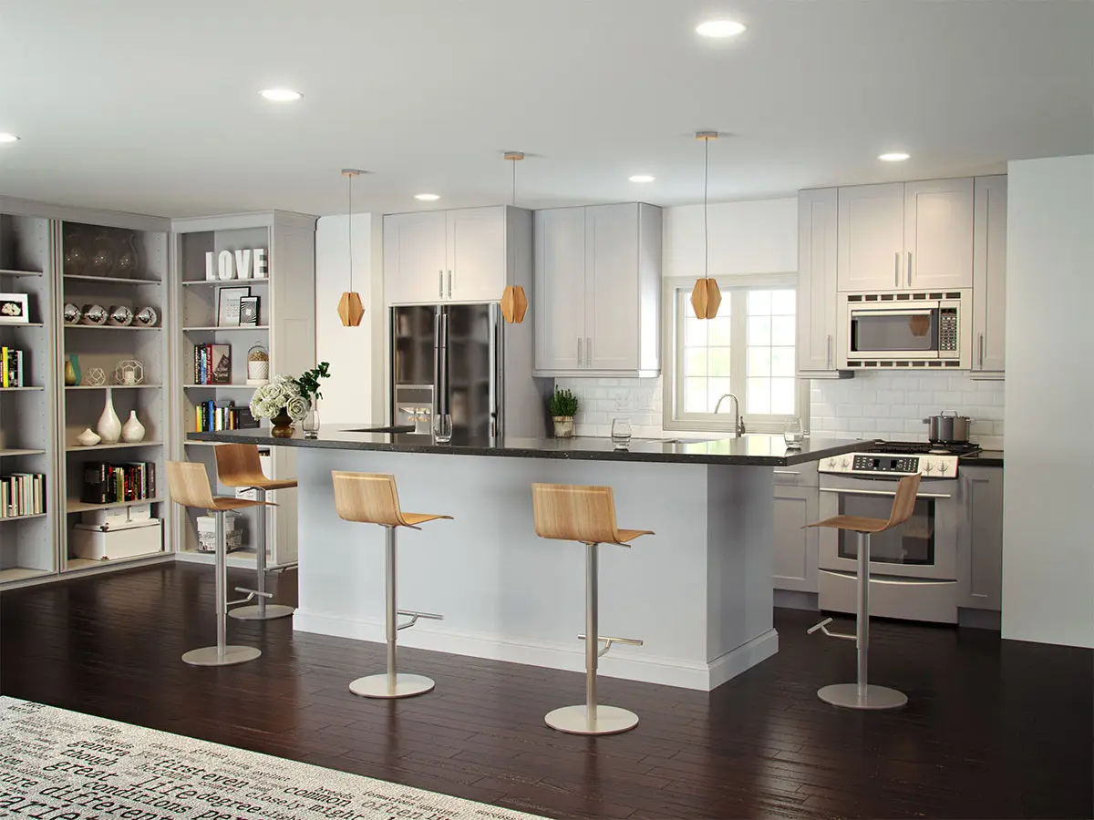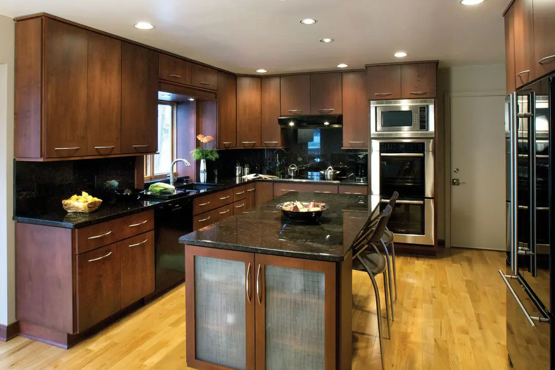 Let’s break the process into two key steps: creating an efficient and comfortable kitchen layout, and selecting the right cabinetry, countertops, and finishes to bring your vision to life.