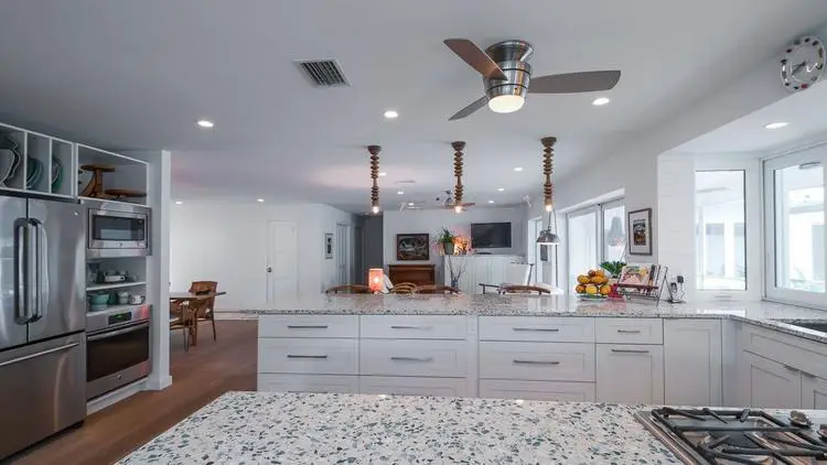 - Open-concept kitchens remain highly popular today, as they improve the overall flow of the home and allow more natural light to spread throughout the space. Consider removing or lowering walls to create room for an island or to expand your countertop area. Eliminating the soffit above existing cabinetry can also make the kitchen feel more open; replacing it with taller cabinets increases both the visual height of the room and the total available storage.